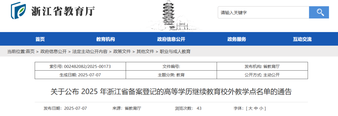 近日,浙江省教育廳網站發布