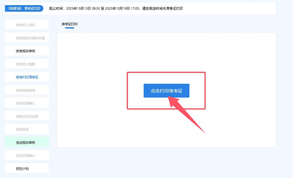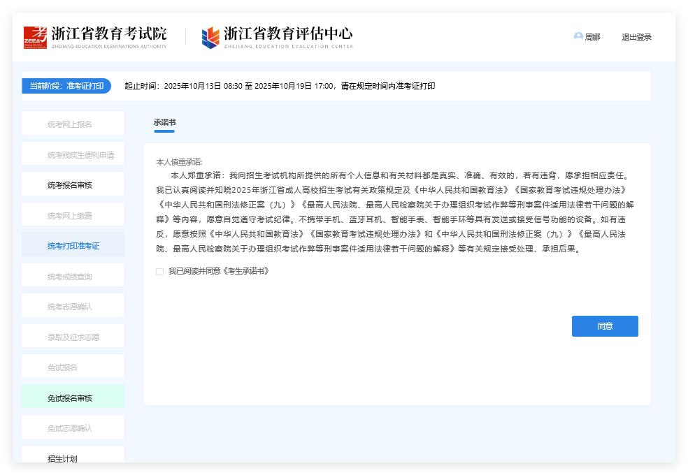 3.進入界面后點擊準(zhǔn)考證打印,后跳出承諾書。