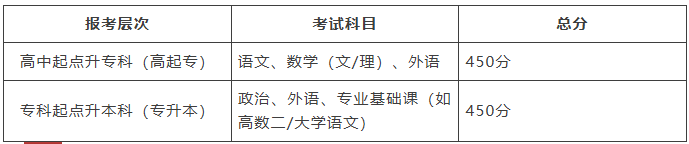 • 文史類、外語類、藝術類、公安類:語文、數學(文)、外語
