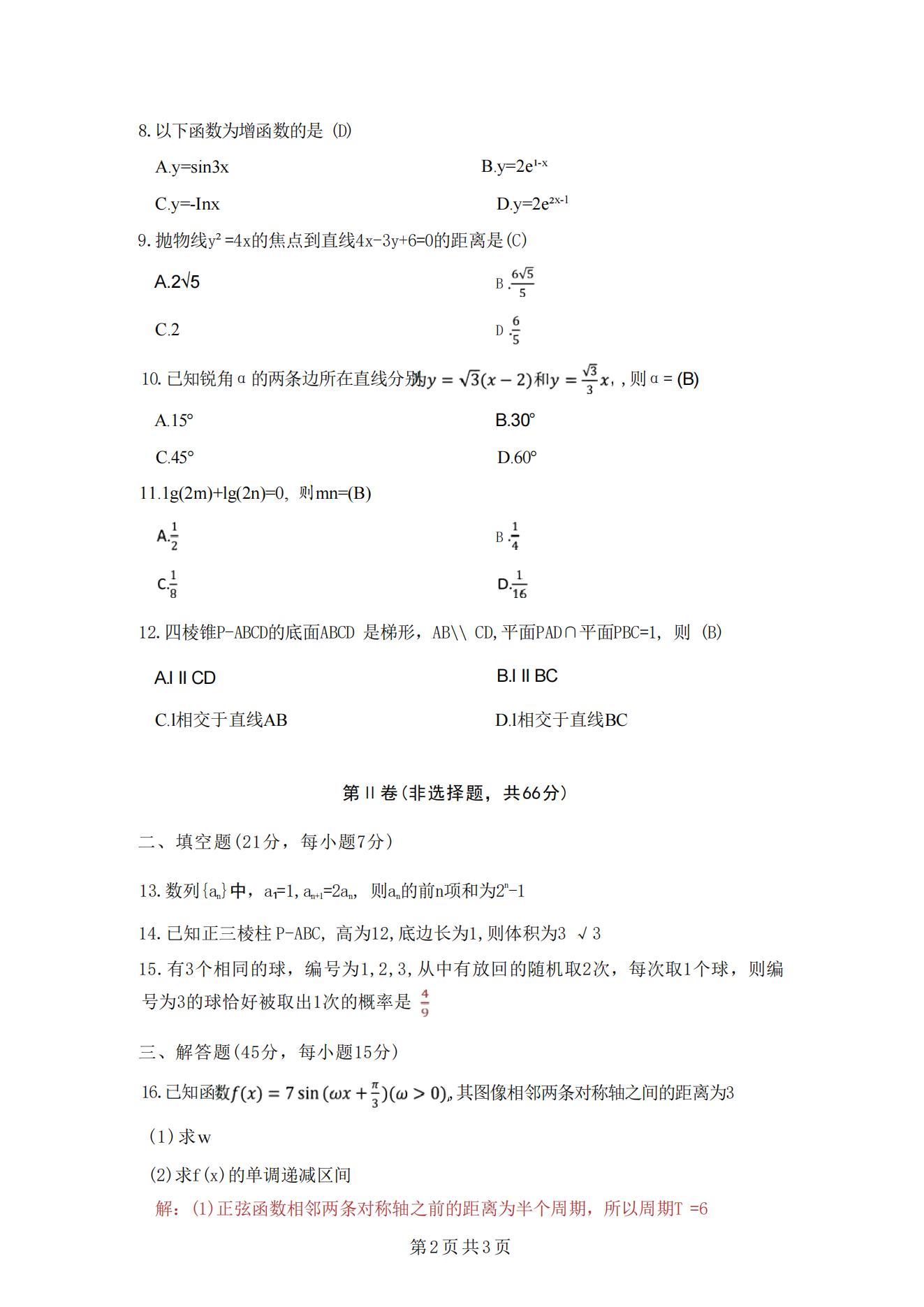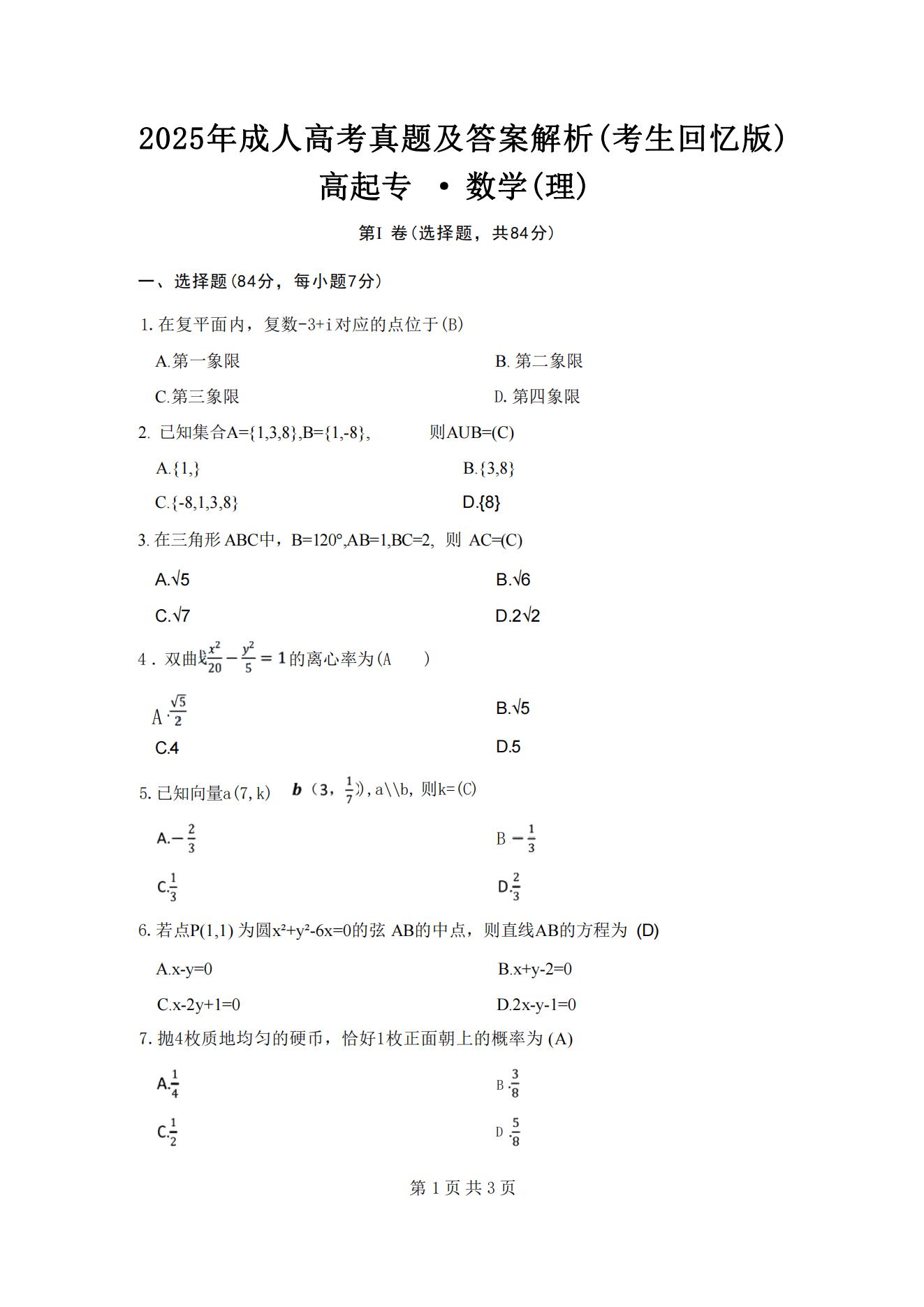 2025年成人高考高起專數學(理科)真題及解析(考生回憶版)